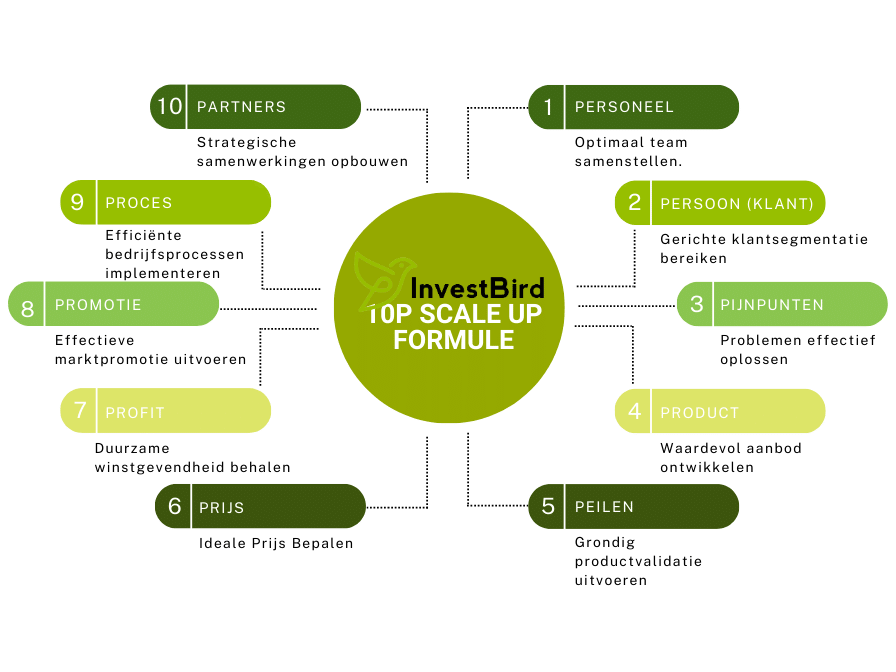 Onze ’10P-Scale Up Scan’ dat de belangrijkste aspecten van je business adresseert, identificeren we zwakheden. Zodat we gerichte oplossingen kunnen bieden.